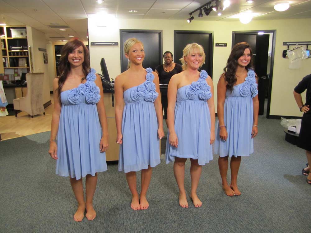 Shopping for bridesmaid dresses can be one of the most stressful parts of wedding planning. When you hit the mall, take everyone’s opinions into account, and try and be flexible. Unless you’re desperate for everyone to have exactly the same gown, it’s often good to have a range of options to suit all shapes and sizes.